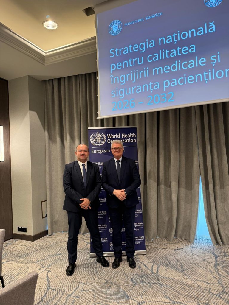 La data de 25 martie 2026, a avut loc consultarea națională privind elaborarea Strategiei Naționale pentru Calitatea Îngrijirilor Medicale și Siguranța Pacientului, organizată la București. Evenimentul, coordonat de Ministerul Sănătății, în colaborare cu Autoritatea Națională de Management al Calității în Sănătate (ANMCS) și cu sprijinul Organizației Mondiale a Sănătății (OMS), a reunit lideri relevanți ai sistemului de sănătate, atât la nivel național, cât și internațional, incluzând reprezentanți ai instituțiilor centrale, ai organizațiilor profesionale, ai unităților sanitare, precum și ai organizațiilor de pacienți și partenerilor sociali.